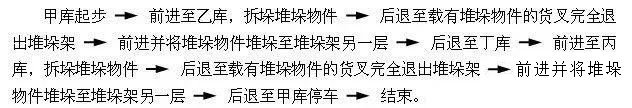 (作業(yè)要點(diǎn):加油提升,倒車(chē)貨叉要后傾要提升,丁庫(kù)放叉)
