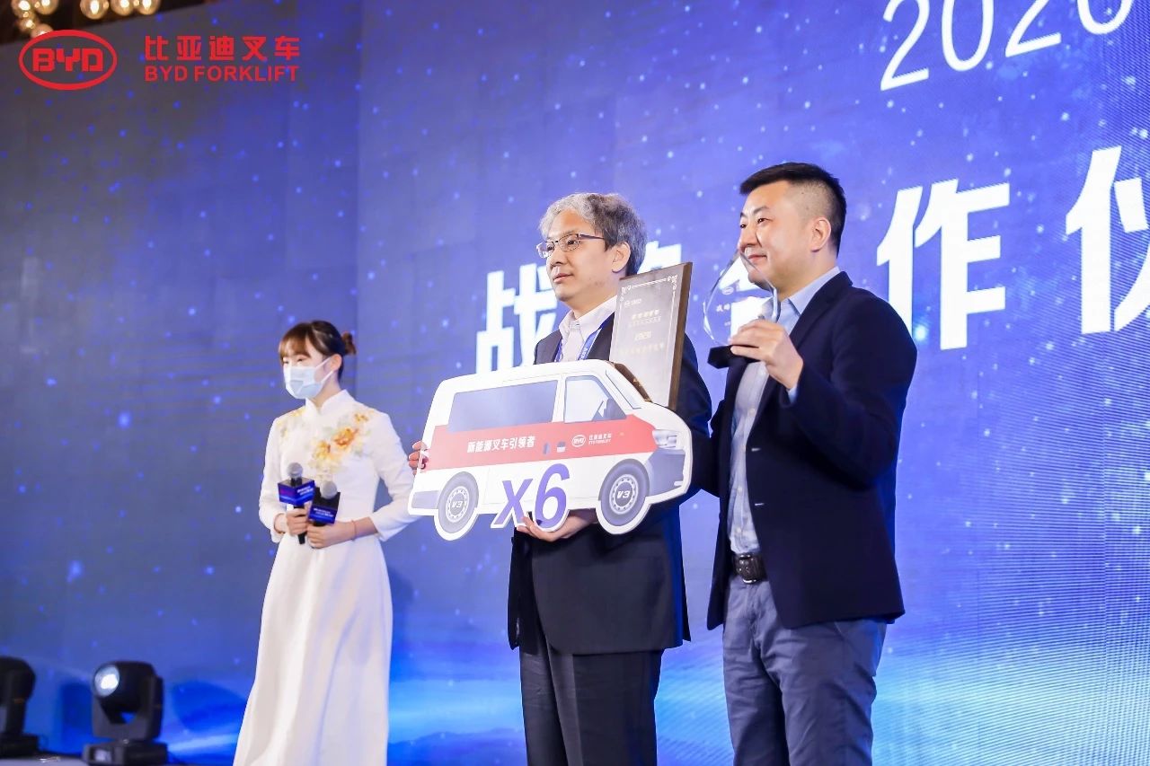 2020年比亞迪叉車的蓬勃發(fā)展除自身的不懈努力之外,也是與全國各地經(jīng)銷商共同凝心聚力、密切協(xié)作的成果,此次大會上比亞迪叉車特授予廣州佛朗斯股份有限公司戰(zhàn)略合作伙伴獎(jiǎng)。